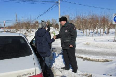 Сотрудники боготольской Госавтоинспекции провели акцию «Цветы для автоледи»