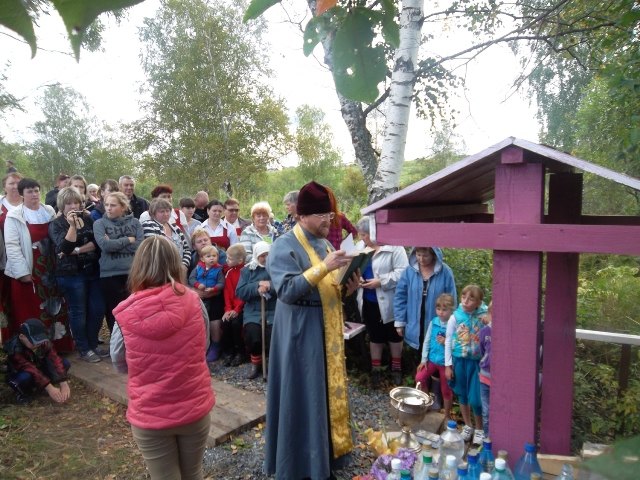 Знаковым событием мероприятия стало освещение родника настоятелем прихода Боготольской Свято – Никольской церкви протоиереем Александром Яблушевским. В помощь проведения церемонии, батюшка пригласил юную жительницу села Тарушко Надежду. Отец Александр, сказал о том, что родники дарованы людям Богом, и что необходимо беречь этот дар, а также поблагодарил всех, кто участвовал в его благоустройстве. По просьбе организаторов, батюшка совершил таинство Крещения. В не традиционной обстановке, на открытом воздухе освещенной родниковой водой были крещены пятеро детей и двое взрослых. Благодарим отца Александра за отзывчивость и внимание оказанное гостям и жителям села Б-Косуль.