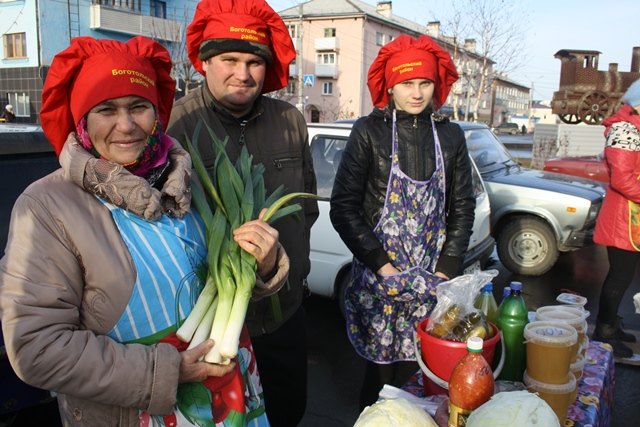 Подворья, которые представляли сельсоветы, тоже носили «мясную» тематику. Были здесь представлены Александровская бутербродная и Большекосульская кухня «Веселая пельмешка» и оздоровительное подворье с экологически чистой продукцией и личным доктором из села Юрьевка, но лучше всех все-таки оказалось Боготольское подворье. Работники Сельского Дома культуры представили украинское подворье под названьем «Пузата хата». А какая же украинская хата без сала, вареников, блинов. И этого было всего вдоволь на боготольском подворье. 2 место в конкурсе подворий заняли работники Юрьевской централизованной клубной системы, а 3 место цыганская кибитка Чайковского сельсовета. В центре площади работали две чайные. Одну из которых представили работники Медяковской централизованной клубной системы, а вторую - Боготольский городской краеведческий музей, за что организаторы ярмарки выражают особую благодарность. Все, кто пришел на ярмарку, мог не только купить себе свежую продукцию, но и угостится чаем, блинами, горячей яичницей, которую тут же жарили работники Боготольской птицефабрики. Все желающие могли получить буклеты, из рук волонтеров молодежного центра «Факел», которые они изготовили самостоятельно. В них содержалась полезная информация о том, как нужно выбирать мясо в магазине или на рынке. Концертную программу организовали самодеятельные артисты со всех учреждений культуры, но самая большая нагрузка легла на плечи специалистов Районного Дома культуры. И за это мы говорим им спасибо! Очень захватывающе прошел конкурс «Счастливый билетик». Более 130 «счастливчиков» получили призы от организаторов ярмарки, среди которых главным был – живой поросенок. Его получил молодой человек из г.Боготола по имени Александр (к сожалению фамилию этого везунчика мы не знаем).