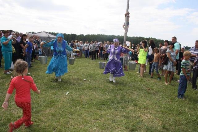 А какой же Сабантуй без спортивных состязаний? Гостям праздника было на что посмотреть! Национальная борьба «Куреш», бой мешками, набитыми соломой, лазание на столб за подарками, бег с коромыслами, соревнования по гиревому спорту и другие состязания были очень зрелищными и захватывающими. Все участники получили призы и награды, но суперприз – живой баран (представленные спонсорами Я.В. Снопковым и М. А. Катаровским) достался тренеру по борьбе из с.Большая Косуль Сидорову Николаю Алексеевичу.