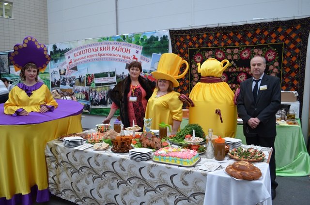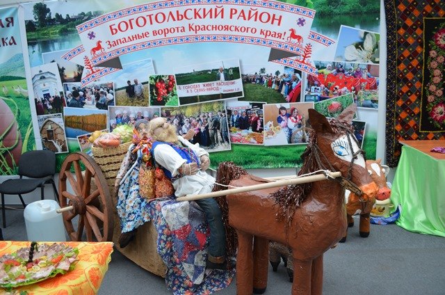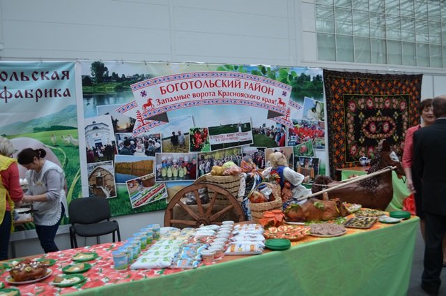 От Боготольского района была выставлена продукция «ООО Боготольская птицефабрика», «ООО Боготолмолоко», ИП Попов М.П., ИП КФХ ДенисовВ.Н., совхоз Боготольский, «ООО Житница». В оформлении подворий активное участие приняли работники культуры Боготольского района: коллектив МБУК «СДК» с. Боготол (директор Валуева Л.П.), МБУК «ЦКС» с. Большая – Косуль (директор Соловьёва С.А.), МБУК «ЦКС» с. Медяково (директор Ношкина В.А.). Музыкальное оформление подворья осуществляли народный ансамбль «Родники народные», руководитель Морозова Н.В.