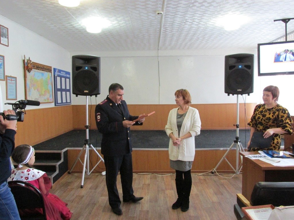 За активное участие в жизни Межмуниципального отдела благодарственные письма были вручены председателю Общественного совета при Межмуниципальном отделе Галине Рахалиной, члену общественного совета настоятелю Свято-Никольской церкви Отецу Александру, председателю совета ветеранов МО Александру Григорьевичу Гольденбергу, руководителю газеты «Земля Боготольская» и «Боготол 24» Ярославу Снопкову и корреспонденту газеты «Земля Боготольская» Ирине Зайцевой, руководителю МУП «Эфир» Юлии Медведевой.