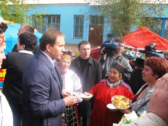Гостей встречали подворья сельских администраций со всех территорий западной группы. Хозяином на выставке Боготольского района был глава Равиль Бикбаев. Он лично приветствовал почетного гостя праздника – Льва Кузнецова. Лев Владимирович с удовольствием отведал кушаний, предложенных боготольскими фермерами. А блюд, попробовать которые мог любой желающий совершенно бесплатно, было предостаточно: жареный поросенок, щука, говяжий язык, пирог с яблоками и многое другое. Наш стол, благодаря стараниям начальника отдела сельского хозяйства Елены Шик и руководителей местных предприятий: ООО «Провинция плюс», ООО «Феникс», ООО «Арга» и «Арга плюс», совхоз «Боготольский», ЗАО «Боготольская птицефабрика», ОАО «Боготолмолоко», ИП Попов М.П., выглядел достойно, был привлекательным, а самое главное – вкусным.