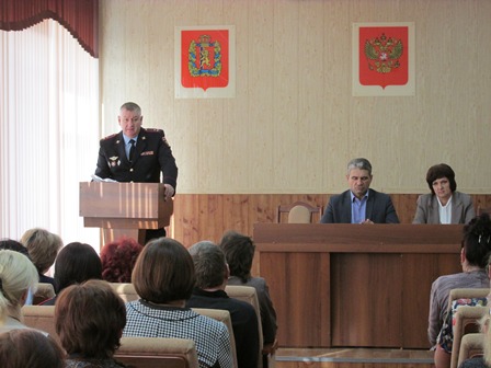 Перед собравшимися директорами и социальными педагогами выступил начальник МО, который довел информацию, о преступлениях, совершенных учащимися школ Шушенского района, г. Дивногорска, г. Канская и г. Красноярска. В результате преступных действий несовершеннолетних погибли 1 подросток и один мужчина, получили травмы две школьницы.
