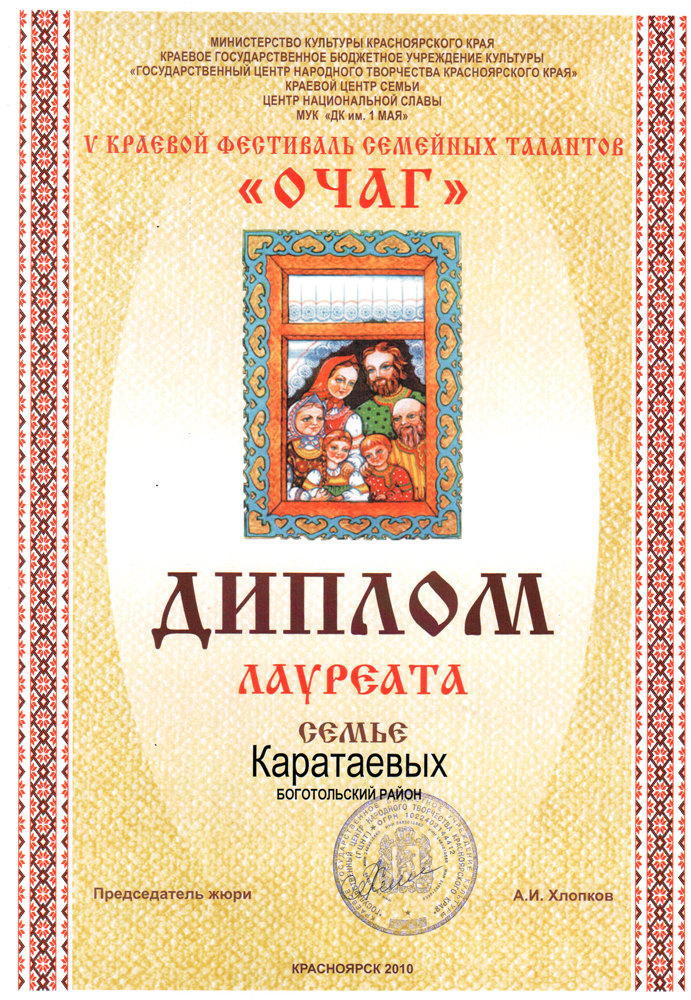 Так назывался краевой фестиваль семейных талантов, который проходил 23, 24 октября в г.Красноярске. Фестиваль проводится Краевым Государственным бюджетным учреждением культуры «Государственный центр народного творчества» при поддержке Министерства культуры Красноярского края.