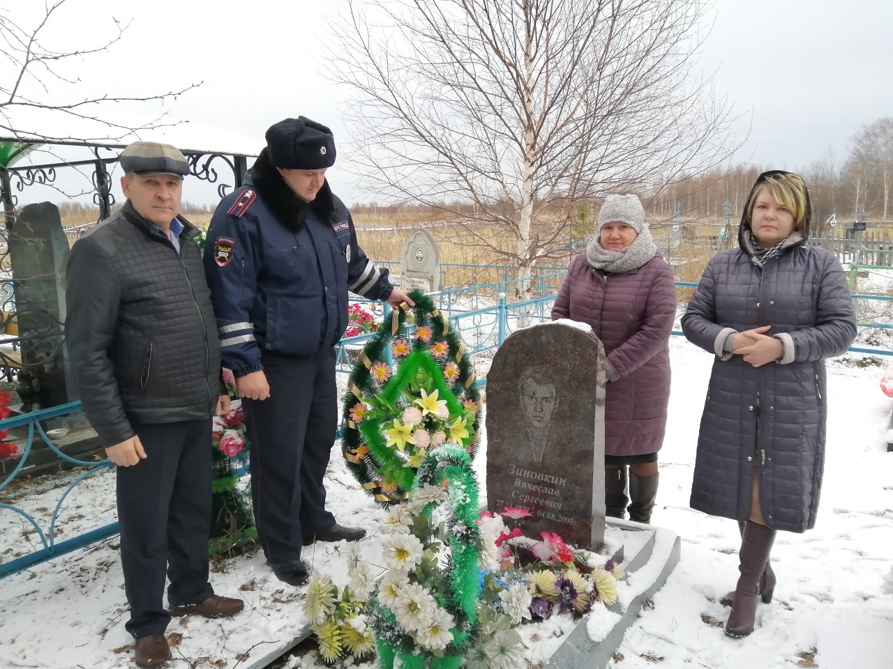 В преддверии празднования Дня сотрудника ОВД, начальник ОГИБДД МО МВД России «Боготольский» майор полиции П. В. Сурнаков, совместно с председателем ОС при МО МВД России «Боготольский» С. К. Николаевым посетили кладбище, на котором похоронен сотрудник полиции Вячеслав Зиновкин, погибший при исполнении служебных обязанностей. Полицейские выразили соболезнование родственникам погибшего, выяснили какая помощь нужна отцу погибшего.