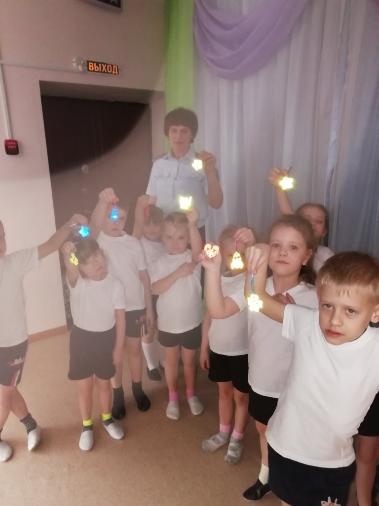 Дошкольники совместно с инспектором по пропаганде ОГИБДД вырезали, клеили светящиеся аксессуары. В итоге у маленьких пешеходов появились светящиеся машинки, рыбки, зайчики, звездочки и сердечки.