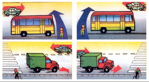 Поэтому ни в коем случае нельзя выходить на дорогу из-за стоящих машин, деревьев, кустов, остановок, домов, заборов. Для перехода нужно выбрать такое место, где дорога хорошо просматривается в оба направления. В крайнем случае, можно осторожно выглянуть из-за помехи, убедиться, что опасности нет, и только тогда переходить дорогу.