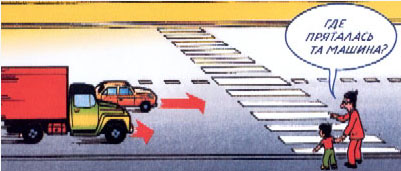Ребенок часто не подозревает, что за одной машиной может быть скрыта другая!