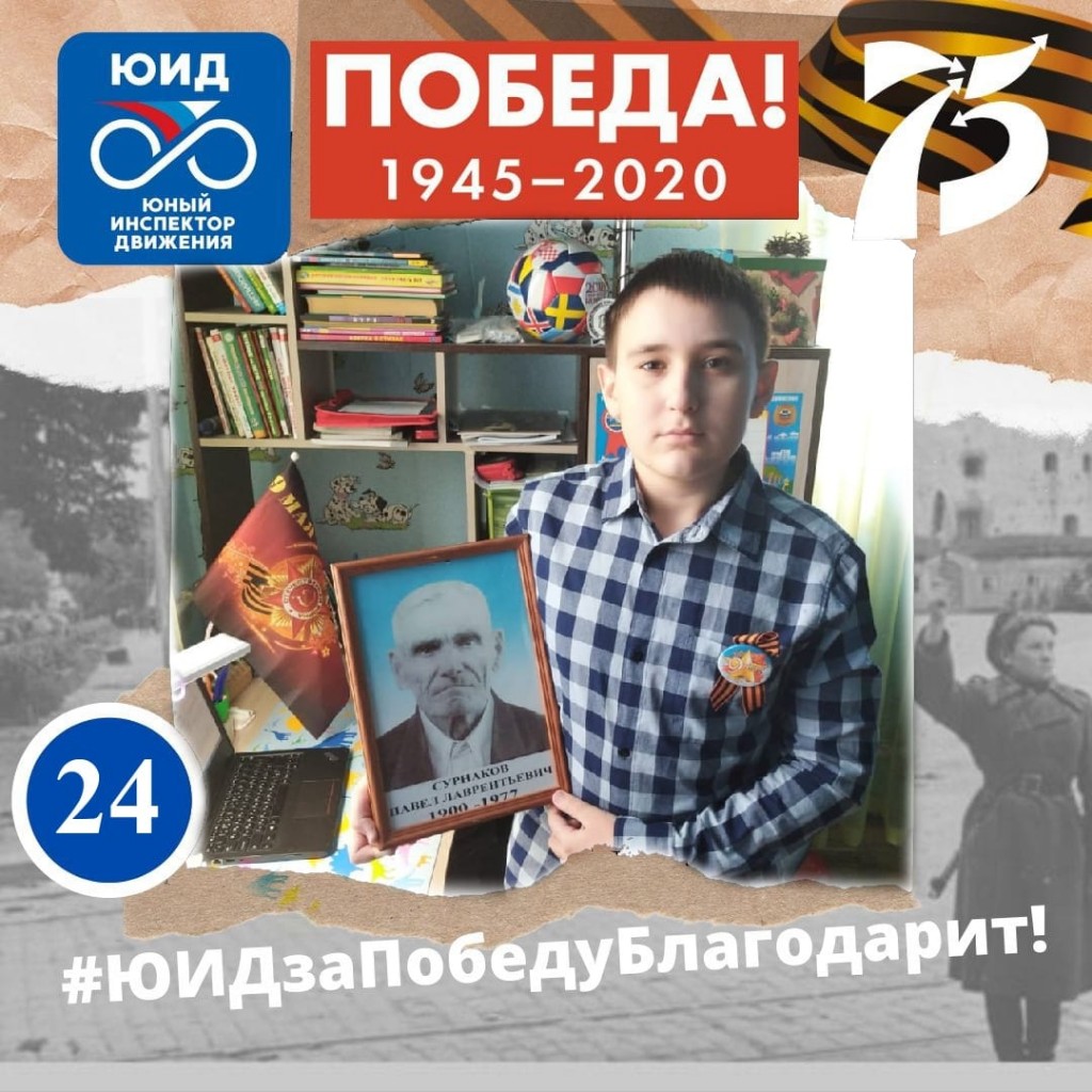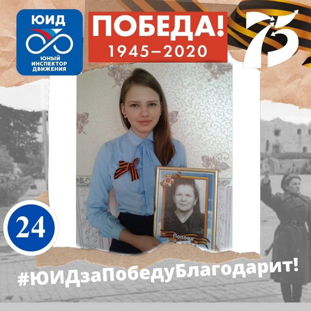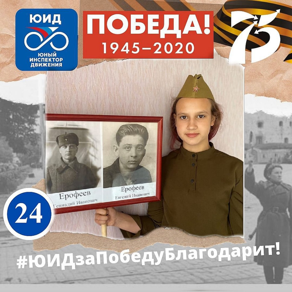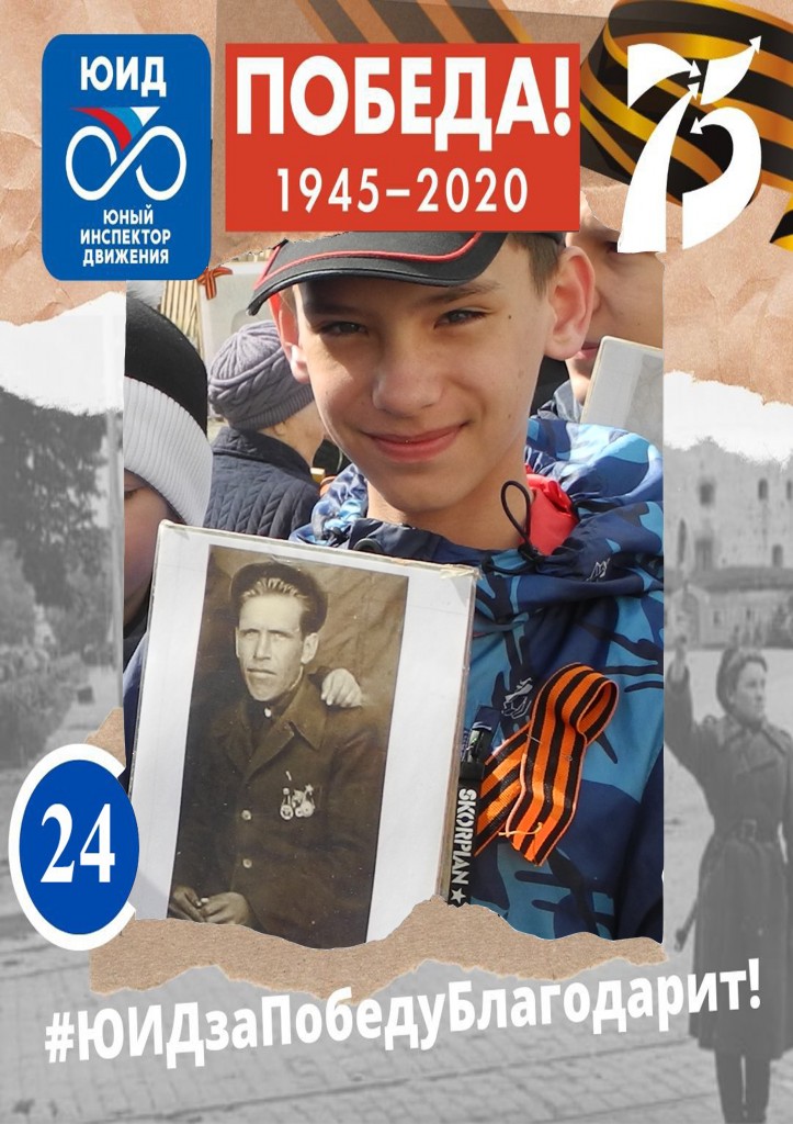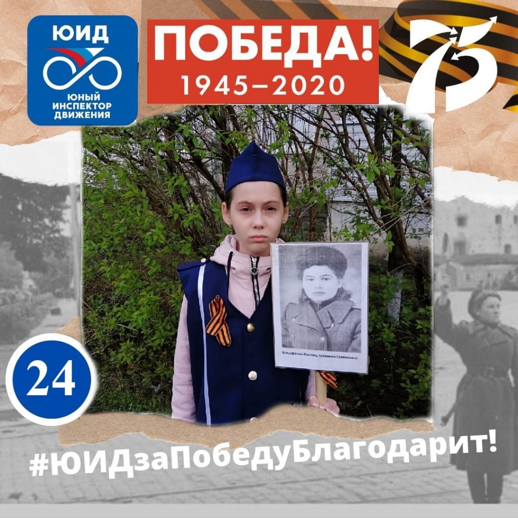 Школьники делятся в социальных сетях фотографиями с портретами родственников – участников Великой Отечественной войны, читают стихи и поют песни в честь 75-й годовщины Великой Победы. Тем самым ЮИДовцы выражают благодарность всем героям войны за подвиг, который они совершили ради счастливой жизни своих потомков. Все фотографии и публикации дети сопровождают тематическими хэштегом #ЮИДзаПобедуБлагодарит.