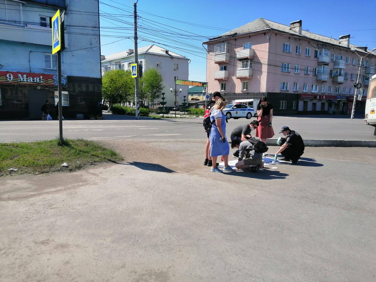 В рамках Декады дорожной безопаснои детей, сотрудники ОГИБДД МО МВД России «Боготольский» совместно с представителями молодежного центра Грани написали обращения к пешеходам на асфальте.