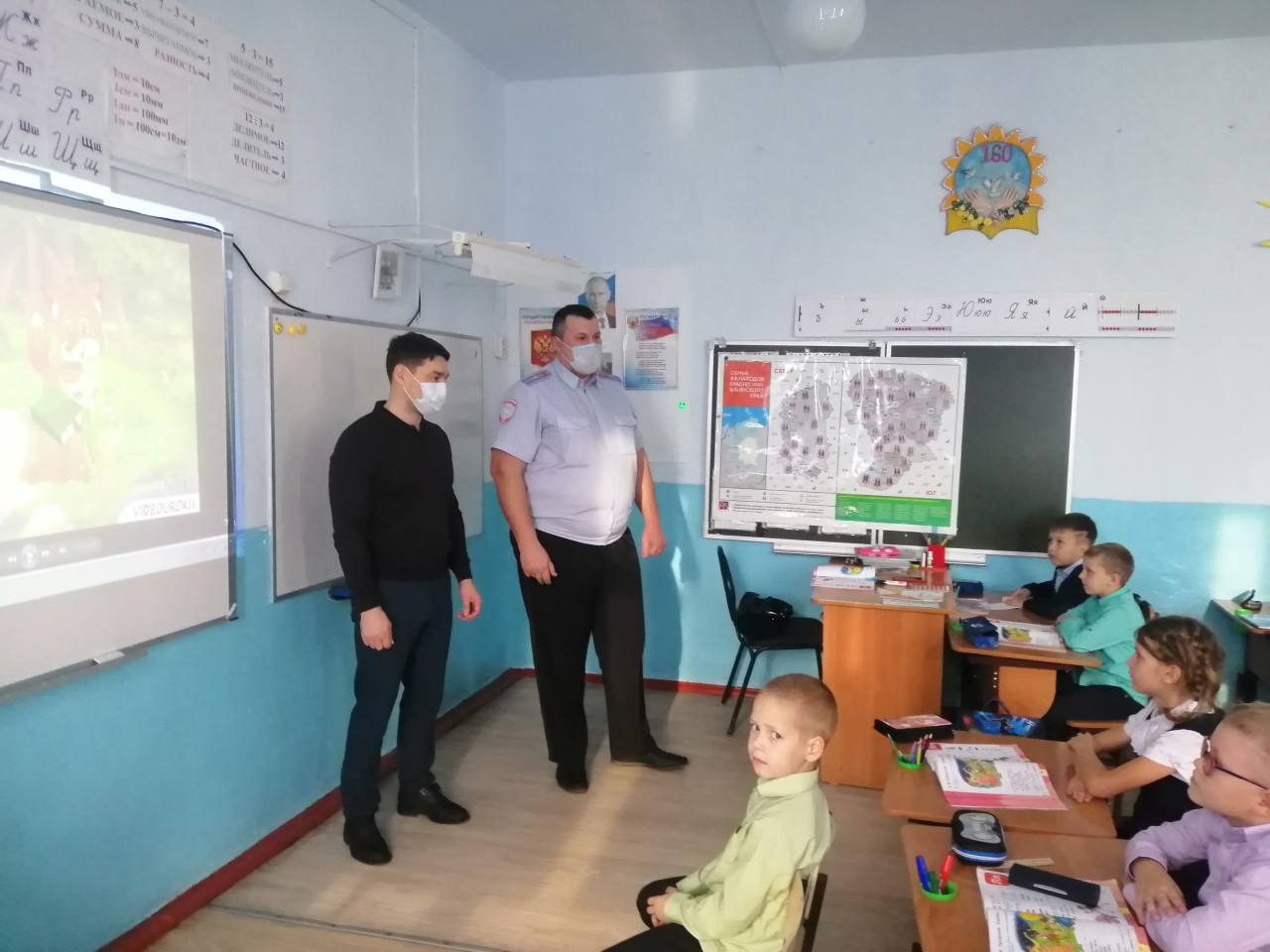 В рамках Декады дорожной безопасности детей глава Боготольского района Владимир Дубовиков совместно с начальником ОГИБДД, майором полиции Павлом Сурнаковым принял участие в проведении классного часа с учащимися 1 класса в «Боготольской» школе на тему: " Знай и изучай ПДД».