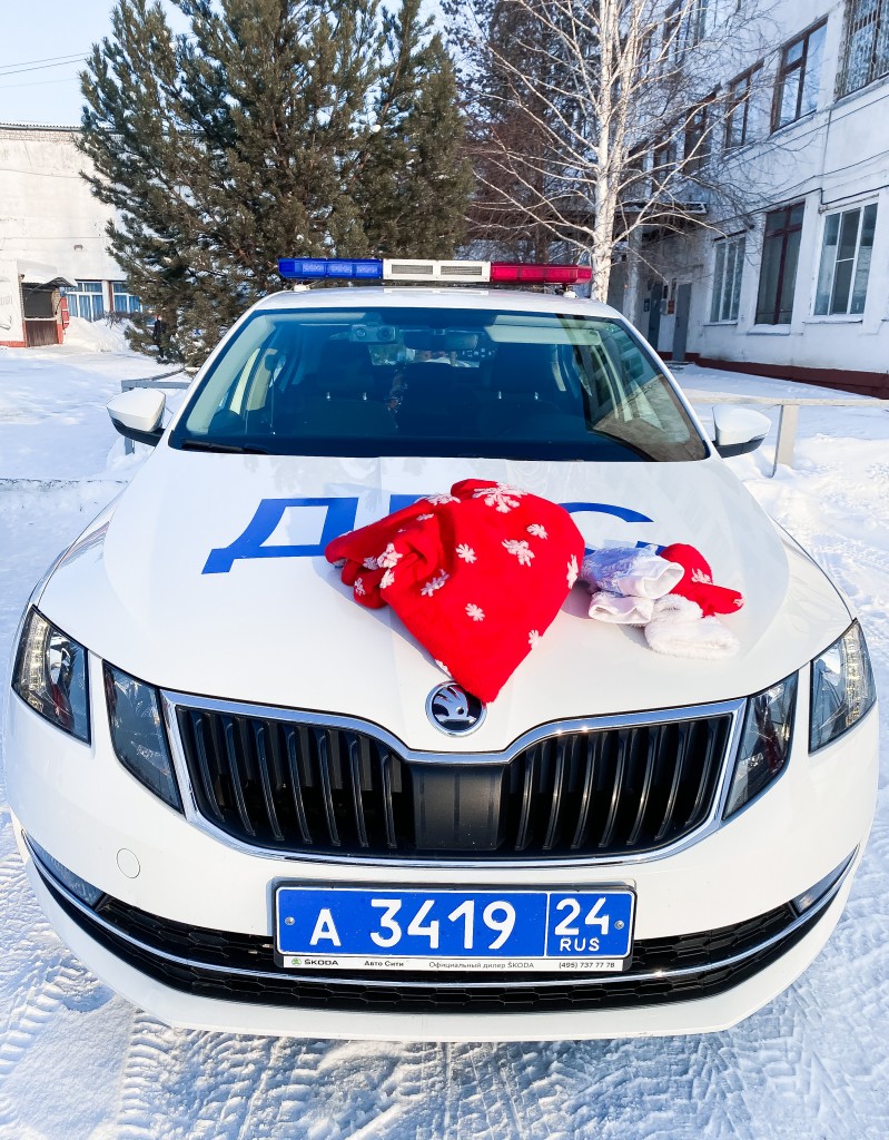Полицейский Дед Мороз и Снегурочка из ОГИБДД МО МВД России «Боготольский» поздравили жителей города с Новым Годом!