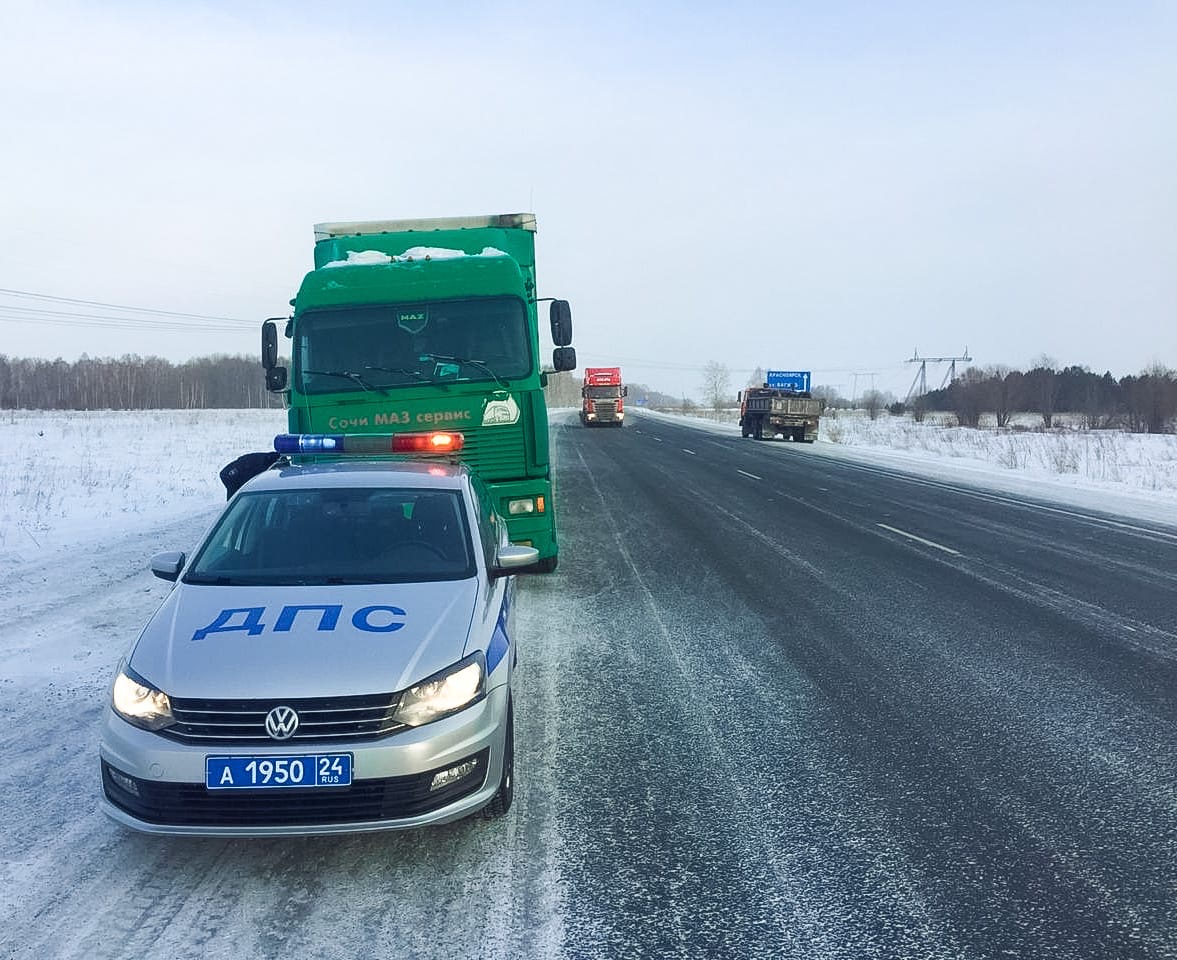 Боготольские госавтоинспекторы помогли водителю, сломавшегося большегруза