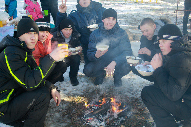 Первый конкурс «Смотр песни и строя» проходил в спортзале Большекосульской СОШ. Военную выправку, ровный строевой шаг, поставленный командный голос и умение петь патриотические песни показали все команды. А лучшие – ребята Чайковской СОШ. В конкурсе «Эстафета» учащиеся Большекосульской СОШ сработали наиболее сплоченно, показав свою ловкость и хорошую скорость. Юрьевская СОШ, раз за разом попадая в макет танка, оказалась победителем в конкурсе «Метание гранат». Владимировская СОШ в силовом упражнении на перекладине показала наилучшую спортивную подготовку. За высокий личный результат был отмечен Шрейдер Эдуард (Чайковская СОШ), который сделал большее количество подтягиваний. В конкурсе «Пейнтбол» команда «Энергия» Вагинской СОШ очень дружно держала оборону своей бухты, сражалась с противником, захватывала знамена. На заключительном этапе «Привал» судьям пришлось очень нелегко, так как все участники оказались по - своему хороши. Каждая команда отличалась своей оригинальностью: сидя у костра одни задорно пели частушки и играли на музыкальных инструментах, другие танцевали и рассказывали стихи. И поэтому 1 место заняли сразу несколько команд: Боготольская, Большекосульская, Вагинская и Критовская СОШ. Помимо спортивных состязаний был проведен Всероссийский конкурс плакатов по темам: «Мы - россияне», «Здоровый образ жизни», «Моя семья – мое богатство», «Во благо общества и страны», «Наша культура» и т.д. Плакаты команды Булатовской СОШ отвечали всем критериям оценки. Участники показали глубину темы, отразили социальную значимость, а так - же проявили креативность.