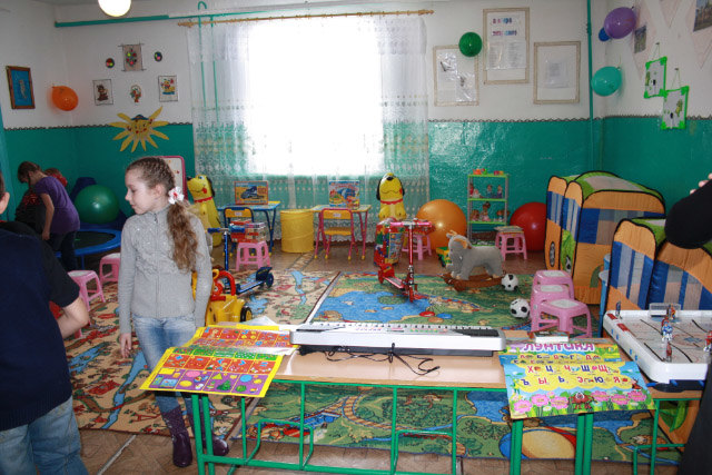 Проект стартовал с села Медяково, детишкам этого села повезло больше всех, так как все игрушки были еще совершенно новые. Горящие глаза ребят сначала с осторожностью рассматривали игрушки, а спустя некоторое время каждый занялся своим делом. И поверьте, им было чем заняться. Одни задорно прыгали на батутах, другие катались на машинках и самокатах. Девочки играли в куклы, собирали пазлы, вместе с электронным плакатом изучали буквы и составляли слова на магнитной доске. Тем временем мальчики с азартом играли в настольный футбол и компьютерную приставку. Также внимание ребят привлекло детское пианино.