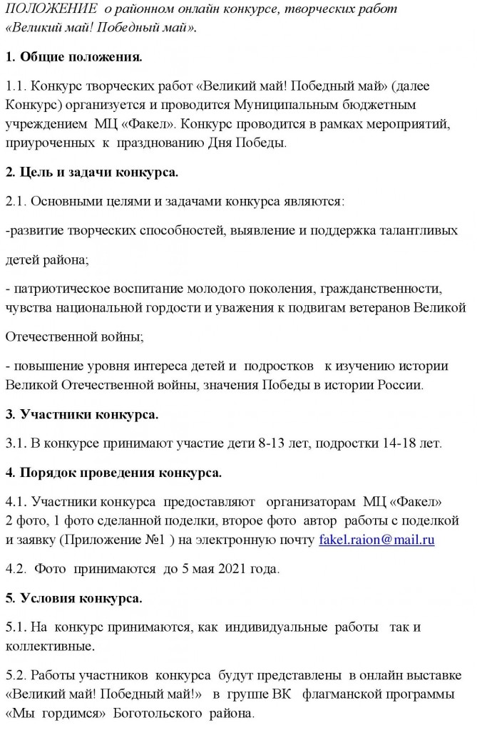 Конкурс "ВЕЛИКИЙ МАЙ, ПОБЕДНЫЙ МАЙ "
