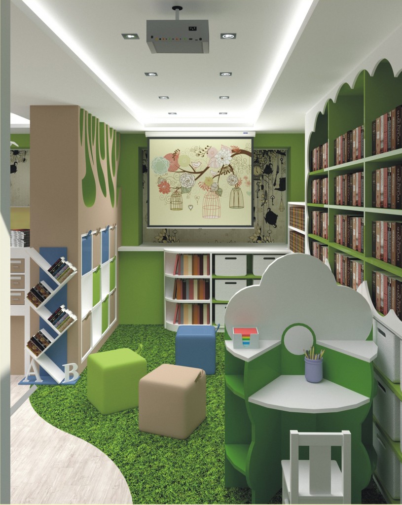 В основе дизайн-проекта библиотеки лежат мотивы произведений Л. Кэрролла. Начиная с входной группы и заканчивая многофункциональным залом, все будет оформлено в стиле сказок «Алиса в Стране чудес» и «Алиса в Зазеркалье». Оригинальная идея позволит сделать Большекосульскую библиотеку уникальной, привлекательной для жителей разных возрастов.