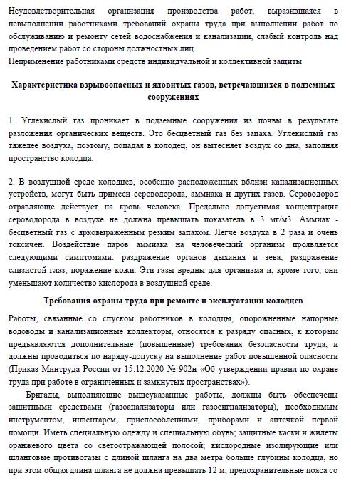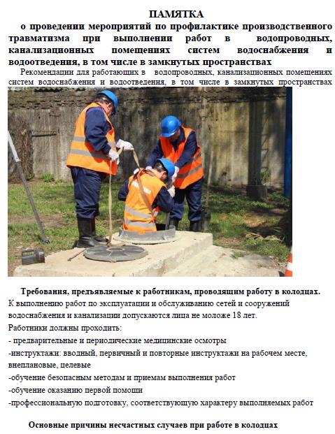 ПАМЯТКА о проведении мероприятий по профилактике производственного травматизма при выполнении работ в водопроводных, канализационных помещениях систем водоснабжения и водоотведения, в том числе в замкнутых пространствах