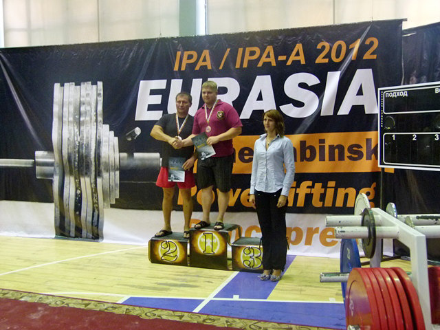 С 10 по 12 августа 2012 года во дворце спорта «Торпедо» в городе Челябинске прошел Открытый чемпионат Евразии по пауэрлифтингу и жиму штанги лежа по версиям IPA/IPA-A. В этих соревнованиях в весовой категории до 100 кг принимал участие наш земляк Евгений Медельцов - спортсмен из Боготольского района с. Большая Косуль (МБУСОК «Олимпиец»). Евгений является мастером спорта международного класса по жиму штанги лежа по версии AWPC (серебряный призер России 2007, чемпион России 2009 года, неоднократно выигрывал мастерские турниры по жиму штанги лежа по версии AWPC), в данной федерации он принимал участие впервые.