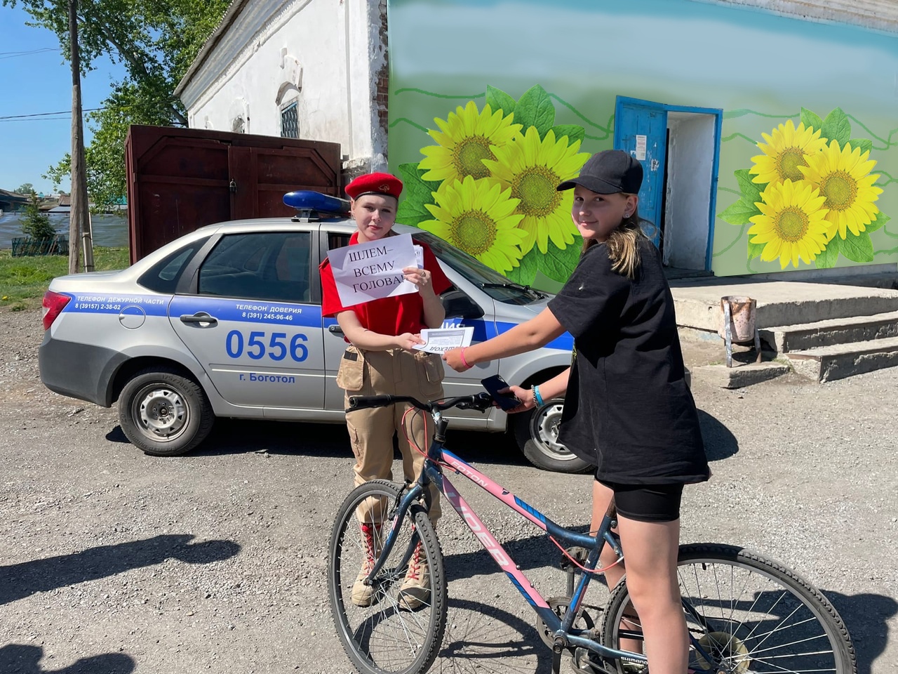 В Боготольском районе сотрудники ГИБДД совместно с ЮнАрмией призвали велосипедистов использовать средства индивидуальной защиты