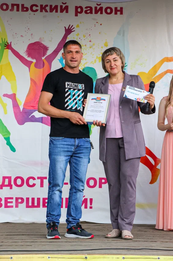 Вячеслав Олегович Усков - председатель Боготольского районного Совета депутатов поздравил лучших спортсменов - Позднякову Полину и Куртова Данила, которые стали победителями в номинации «От успехов к рекордам». Полина добилась значимых результатов в спортивном направлении Северного многоборья, является обладателем знака первого спортивного разряда.