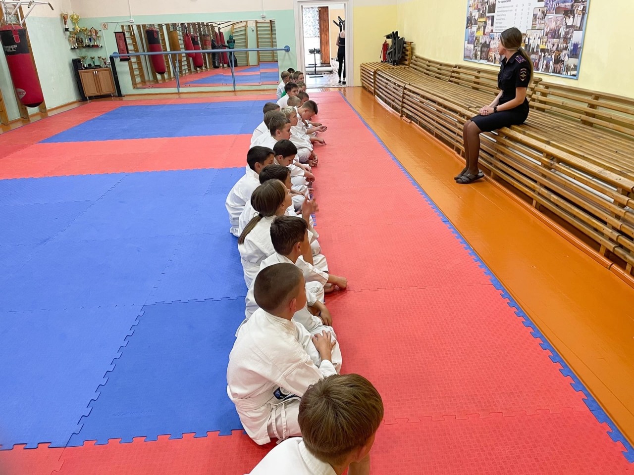 Сотрудники Боготольской Госавтоинспекции напомнили юным каратистам о соблюдении Правил дорожного движения