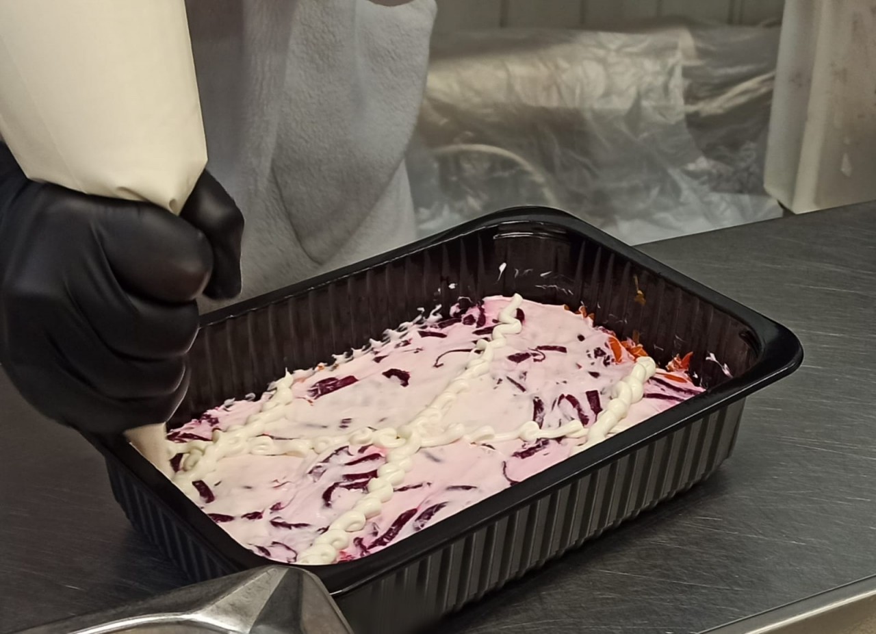 Руководитель кулинарного направления компании «Командор» Екатерина Черноусова пояснила, что в цехе реализована новая схема сборки салата «Сельдь под шубой»: «Раньше в этом процессе был задействован всего один сотрудник. 100 кг продукта он делал более 4 часов. Для ускорения процесс выстроили в линию, добавив сотрудников, где каждый теперь выполняет определённую работу на своём этапе. В итоге время приготовления сократилось до 2,5 часов. При этом штат не увеличился».