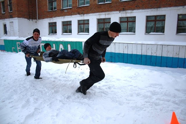 В конкурсе «Эстафета» ребятам предстояло прохождение препятствия «Болото», преодоление трех планок и дистанции ползком под сетью, в заключение эстафеты было необходимо перенести «раненного» на носилках к финишу. Как и в прошлом соревновании, Большекосульцы сработали быстрее всех и заняли первое место.
