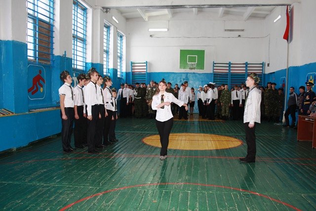 В этом году поднять флаг под гимн России выпала честь победителям прошлой игры – команде Большекосульской школы. После чего начался конкурс песни и строя. Исключив ошибки прошлого года, команды друг за другом гордо маршировали и пели патриотические песни. На этом этапе жюри отдало почетное первое место Большекосульской школе.