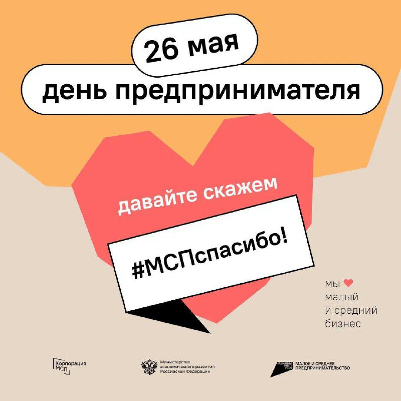 В День предпринимательства, который отмечается в России 26 мая, говорим малому и среднему бизнесу Красноярского края #МСПспасибо. Социальная акция Корпорации МСП и Минэкономразвития РФ при поддержке нацпроекта «Малое и среднее предпринимательство» поможет превратить 26 мая в день поддержки и благодарности тем, кто работает каждый день для людей и ради людей.