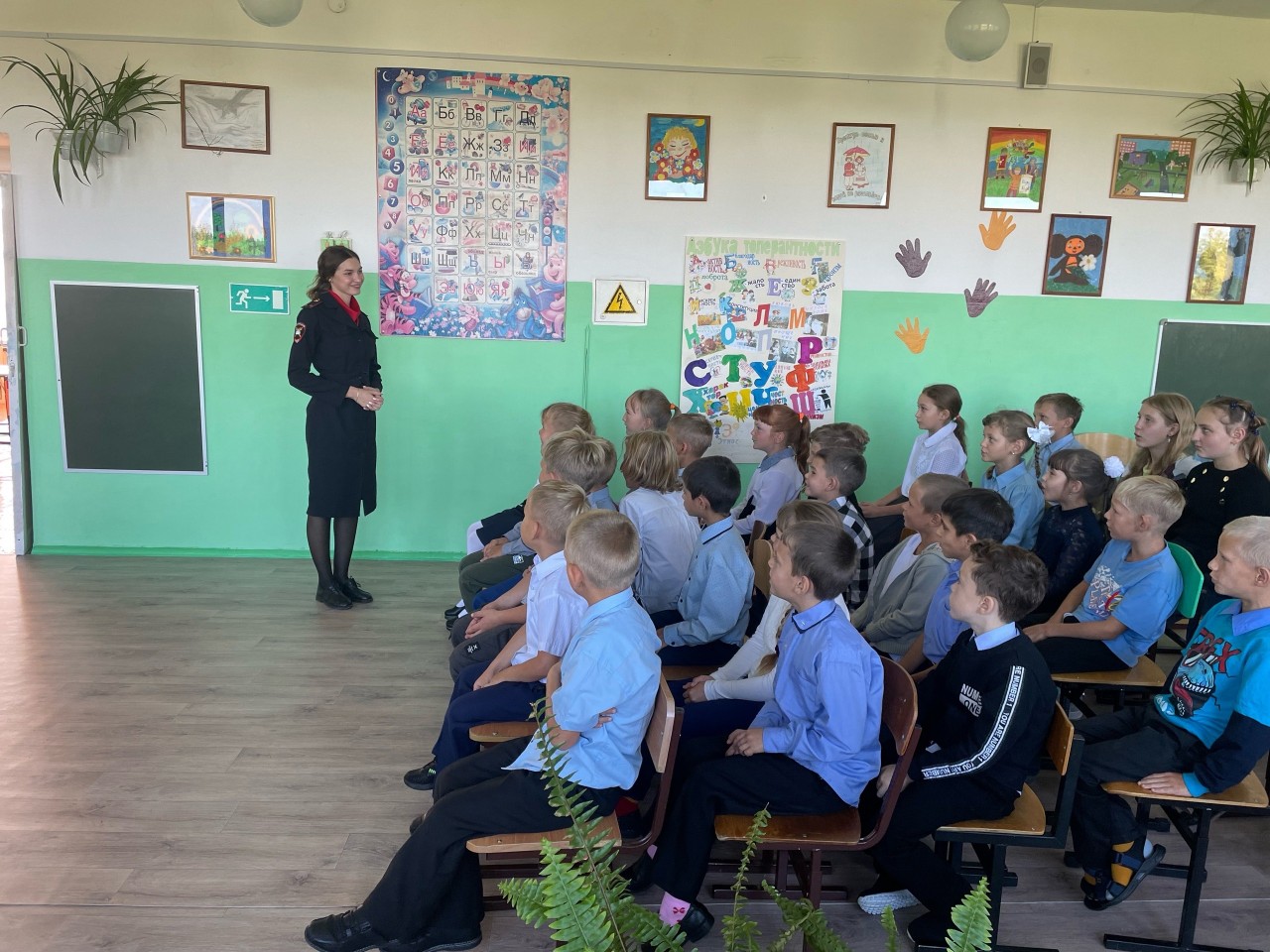 Сотрудники Госавтоинспекции беседуют о соблюдении правил дорожного движения со школьниками Боготольского района