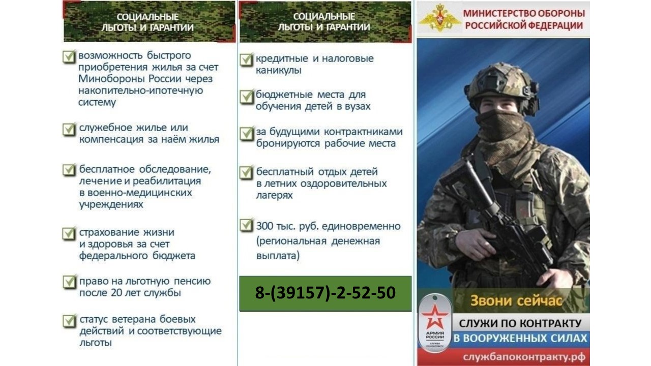 проводится набор граждан от 20 до 59 лет на контрактную службу в Вооруженные силы Российской Федерации, в основном, для участия в СВО. Призыв