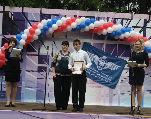Право огласить имя первого лауреата премии в номинации «Молодёжный лидер» было предоставлено методисту отдела культуры и молодёжной политики администрации Боготольского района, специалисту по работе с молодёжью молодёжного центра «Факел» Боготольского района Наталье Александровне Халченко. Особенно приятно отметить, что в данной номинации победителей двое: Хабибрахманов Андрей из с. Юрьевка и Анастасия Живоглядова из д. Булатово. Эти ребята признанные лидеры не только школы, но и села. Андрей возглавляет трудовой отряд старшеклассников, постоянный участник районных и краевых акций, инициатор и организатор добрых дел. Анастасия возглавляет волонтерское движение, входит в состав проектной группы и является активным участником реализации социальных проектов в Боготольском районе.