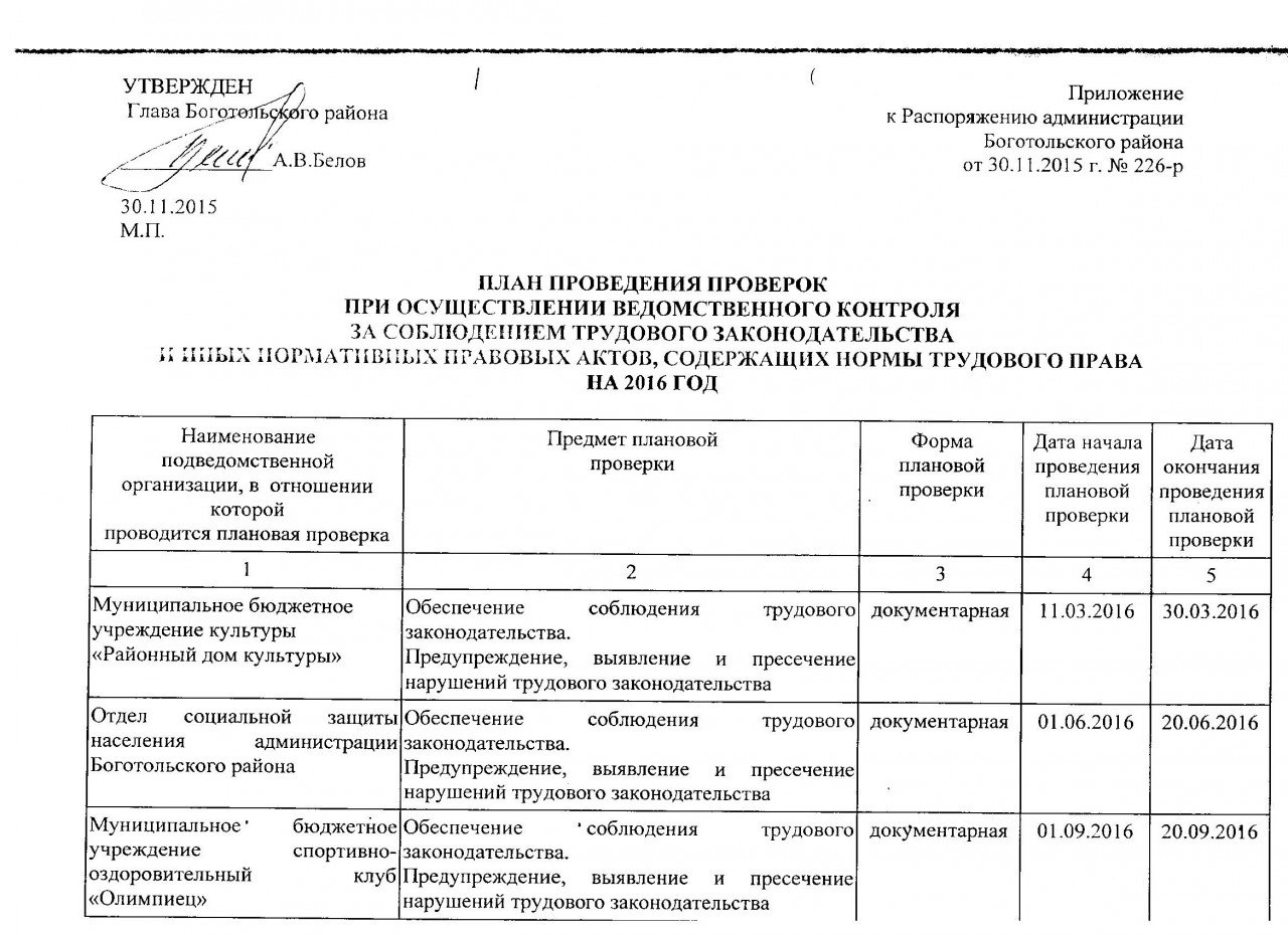 Например: Распоряжения Главы района