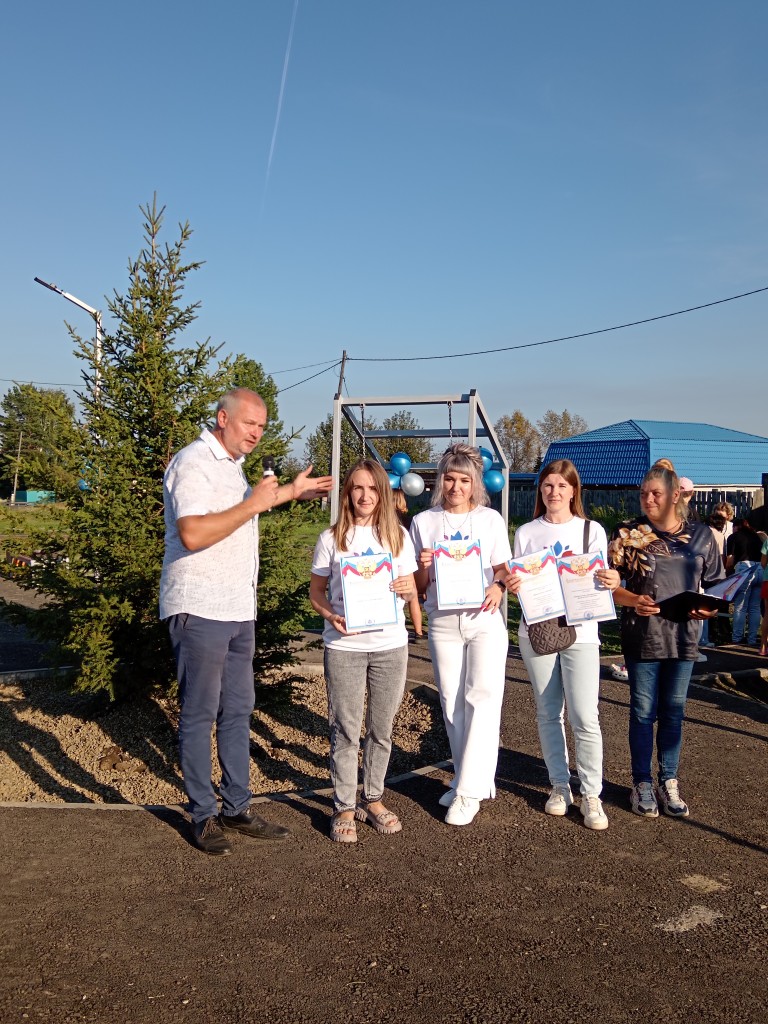 В ходе реализации проекта была благоустроена общественная территория - создана освещенная зона отдыха с пешеходными дорожками, скамьями, качелями, мусорными урнами и зелеными насаждениями. Ель предоставлена и посажена индивидуальными предпринимателями, саженцы рябин –жителями села. Подготовлено и проведено праздничное мероприятие зоны отдыха – «Солнечная полянка».